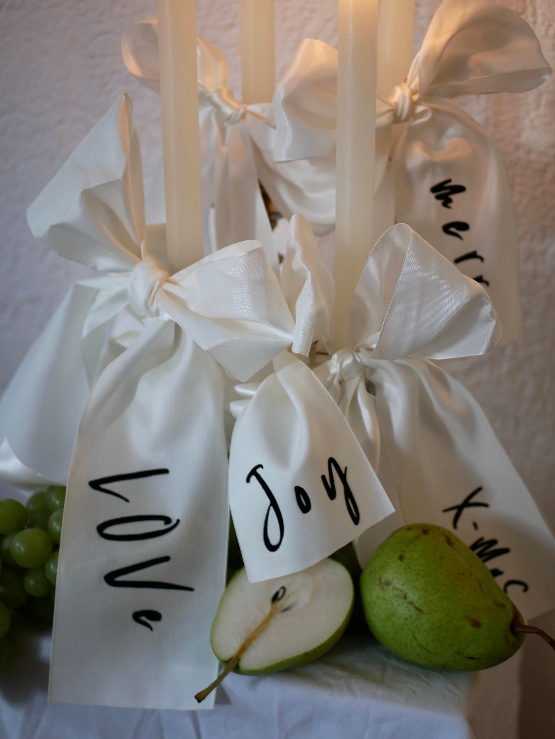 und die stimmungsvollen Schleifen sind in diesem Jahr mal wieder nicht wegzudenken. Wir personalisieren dir deine eigens kreierte Schleife für deinen Baum, dein zu Hause, den Adventskranz oder um jedes Geschenk zu veredeln. Die Schleife ist mit einem Draht versehen, mit dem sie mühelos befestigt werden kann.