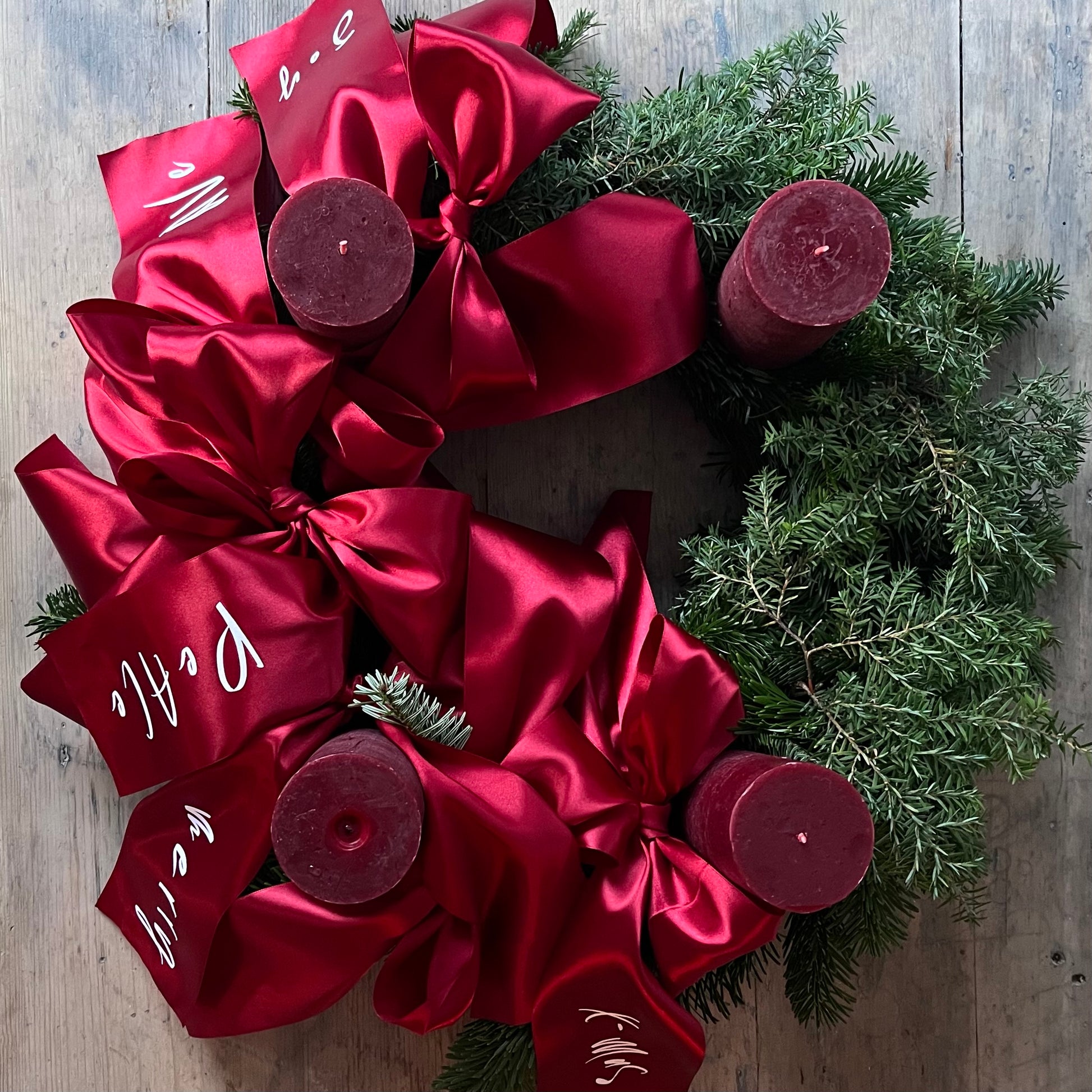 und die stimmungsvollen Schleifen sind in diesem Jahr mal wieder nicht wegzudenken. Wir personalisieren dir deine eigens kreierte Schleife für deinen Baum, dein zu Hause, den Adventskranz oder um jedes Geschenk zu veredeln. Die Schleife ist mit einem Draht versehen, mit dem sie mühelos befestigt werden kann.